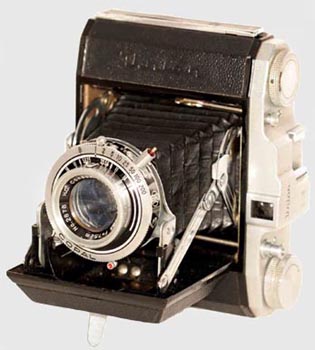 オランダのターベス(Tahbes)社から1950年に発売されたターベス・シンクロナ(Tahbes Synchrona)という6×6判カメラ。このカメラは、ニッケルメッキの全金属ボディと、大きな光学ファインダーが特徴。