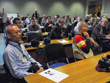 2012年11月の研究会は10日定刻午後2時から開催され、小林事務局長の幹事会報告、山前フランスカメラ展実行委員長によるフランスカメラ展進捗報告などに引き続き、年末恒例の高島会長による「イハゲーとそのカメラ」と題する研究報告が行われました。続いて高島会長進行による持参カメラ紹介、最後に3グループに分かれてのグループセッションが行われた。11月のテーマは「カメラ名またはメーカー名が“G、H、I、J”で始まるカメラ」でした。当日紹介された持参カメラは「研究会報告 (その2)」で報告します。
